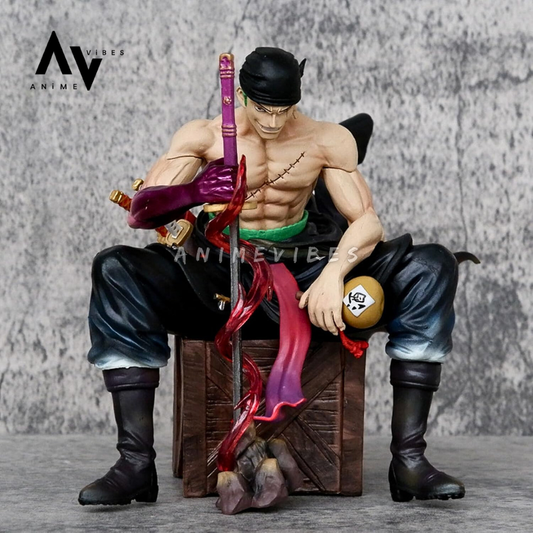Roronoa Zoro Sitting on Stool Action Figure | 15 CM | The Swordsman at Rest ⚔️