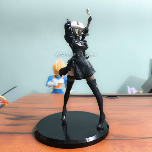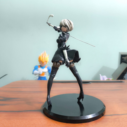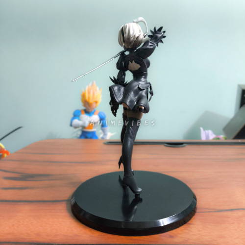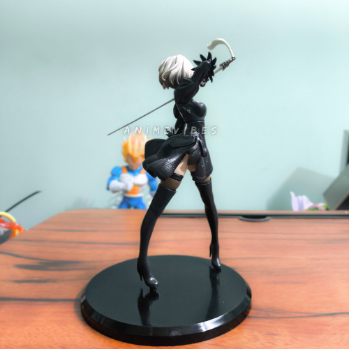 Command the battlefield with this stunning 19cm 2B figure from NieR: Automata, striking a powerful pose wielding her katana with flowing white hair and black combat dress. The high-grade PVC sculpt highlights her sleek black outfit, thigh-high boots, and blindfold perfectly for an iconic android warrior display.
