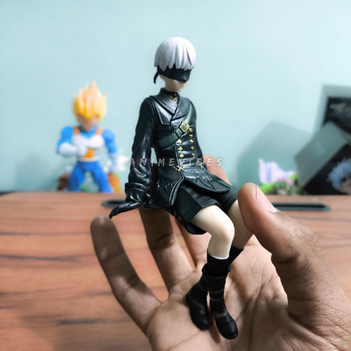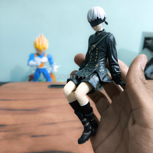 Bring the tragic android hero from NieR: Automata to your display with this 14cm 9S figure, captured sitting confidently with legs crossed and hands resting casually. The high-grade PVC sculpt perfectly recreates his signature white hair, black tactical coat with gold buttons, blindfold, and sleek thigh-high boots for an authentic YoRHa soldier look.