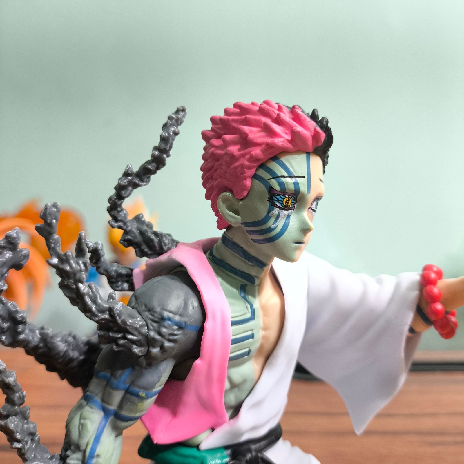 • Design Details: Features Akaza’s pink hair with blue tips, yellow eyes with diamond pattern, tattoos across torso and arms, white fundoshi, fighting stance with claw-like hands, and demonic aura effects with vibrant paintwork for authentic realism.