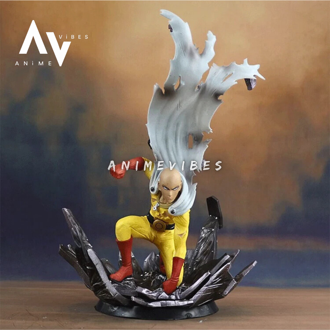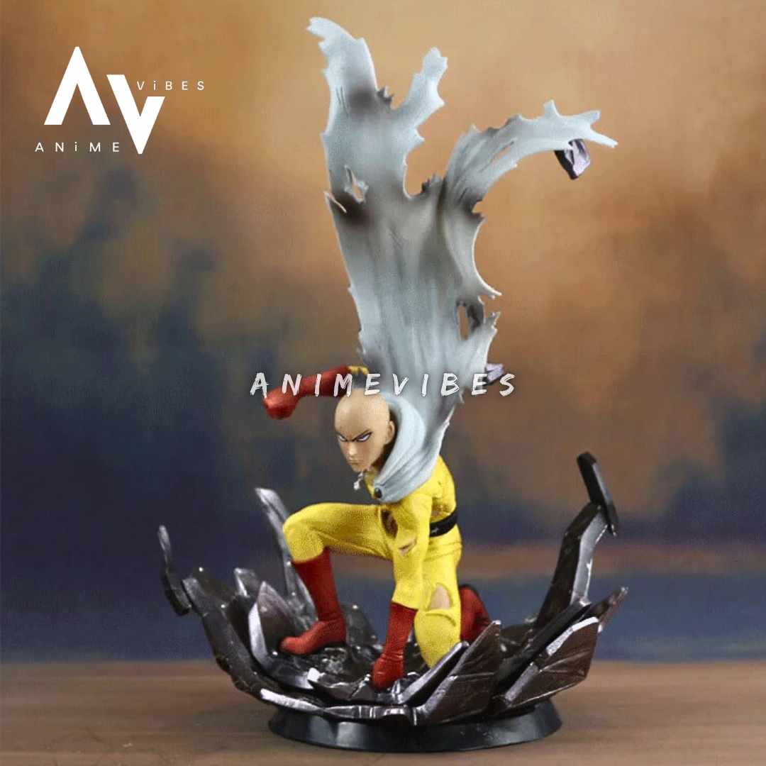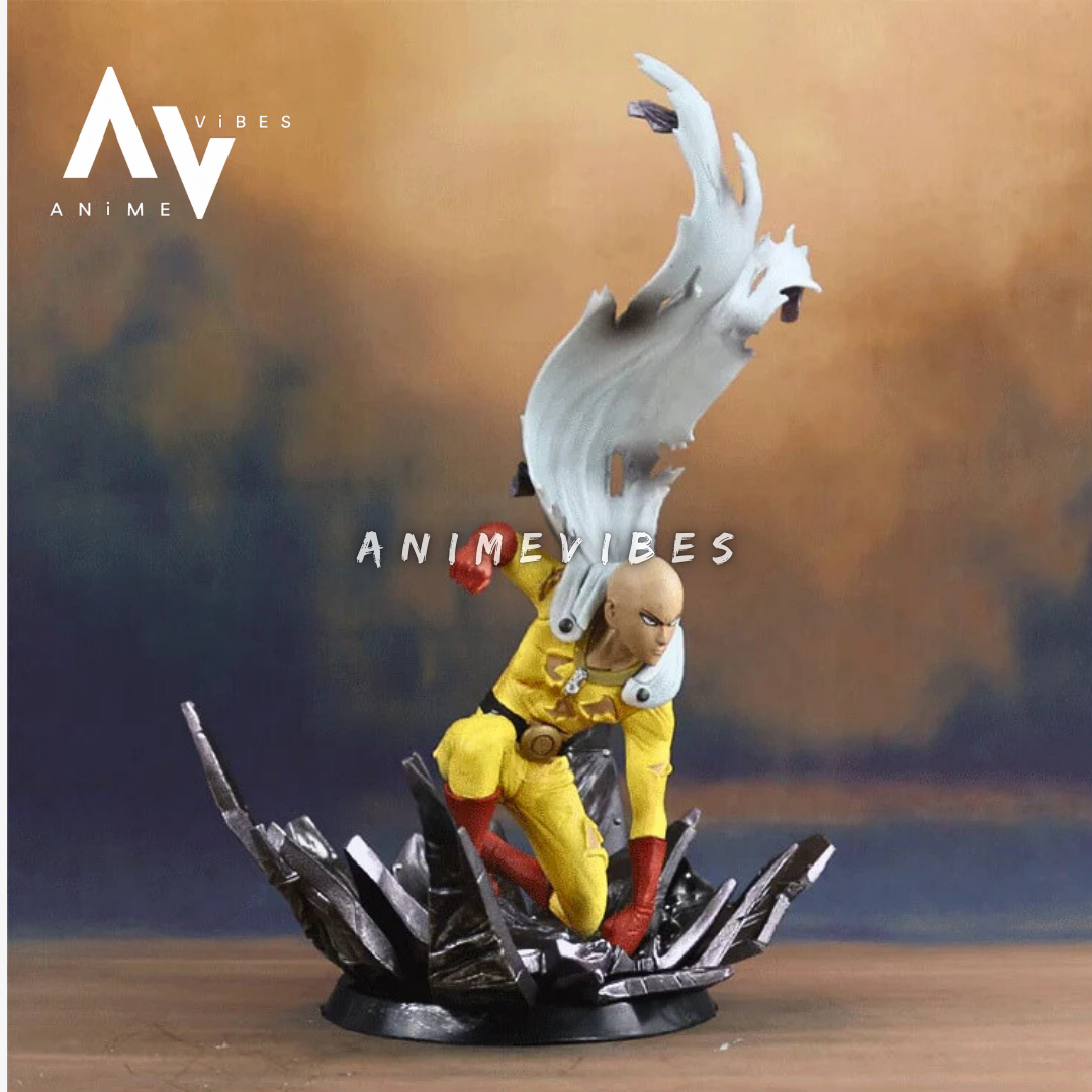 - Dynamic Pose: Saitama is captured mid-action, bringing his relaxed yet powerful persona to life.