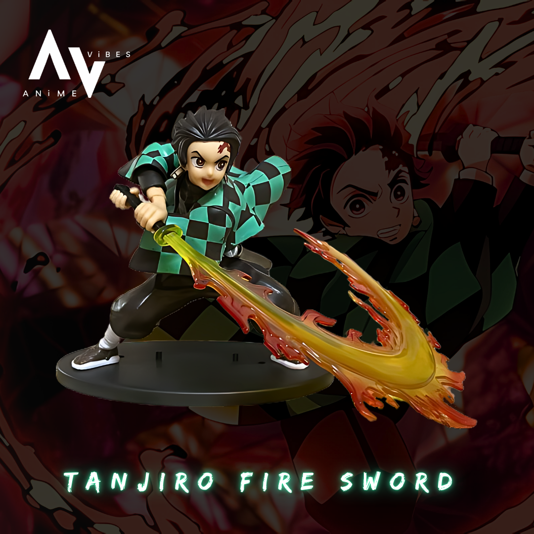- Dynamic Action Pose: Shows Tanjiro in mid-swing, with flames bursting from his sword.