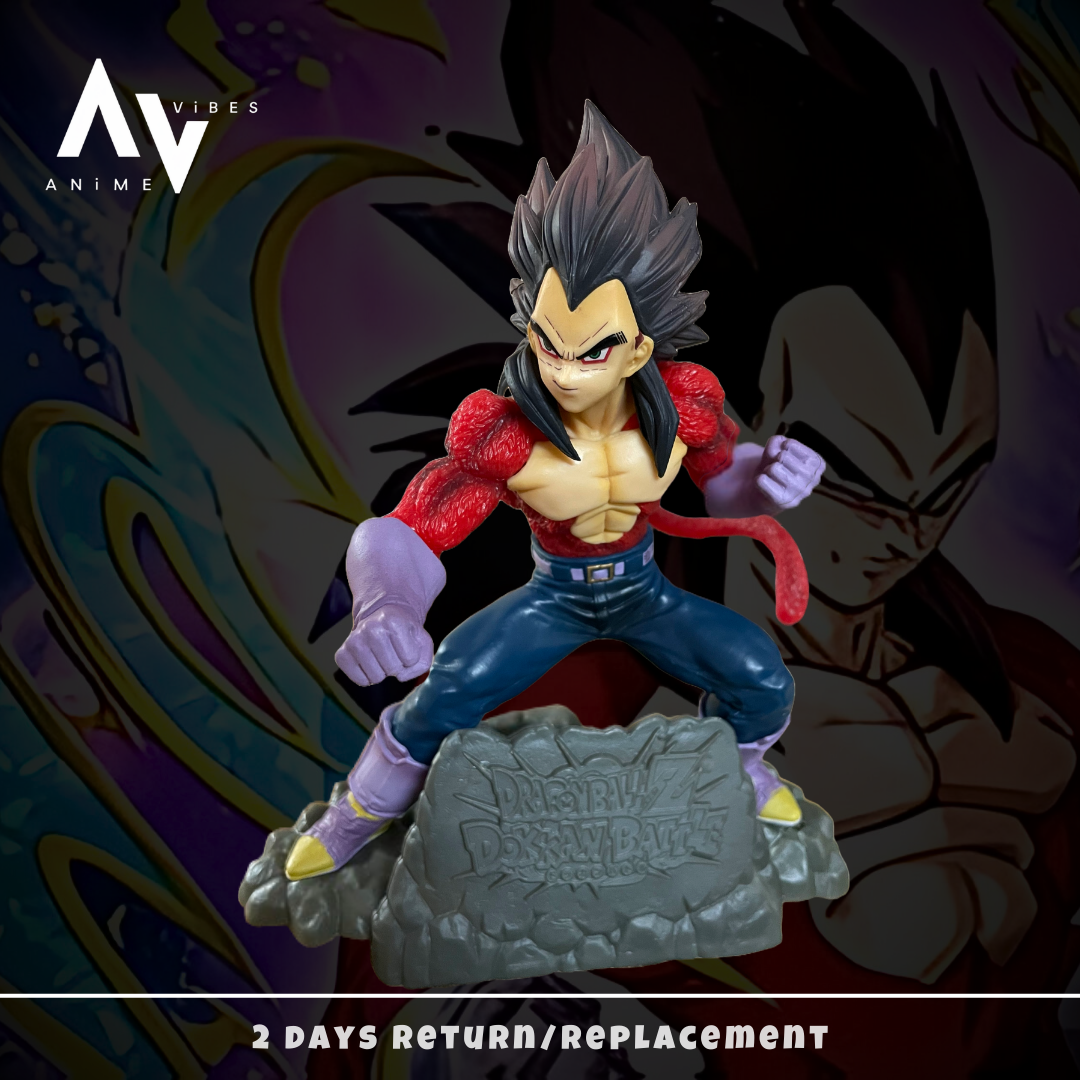 • Intricate Detailing: Showcases Vegeta’s iconic Super Saiyan 4 form with meticulous craftsmanship, highlighting his powerful aura and dynamic appearance.