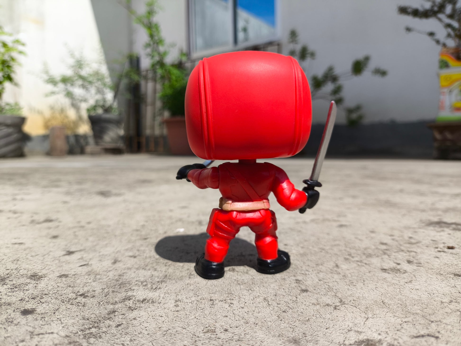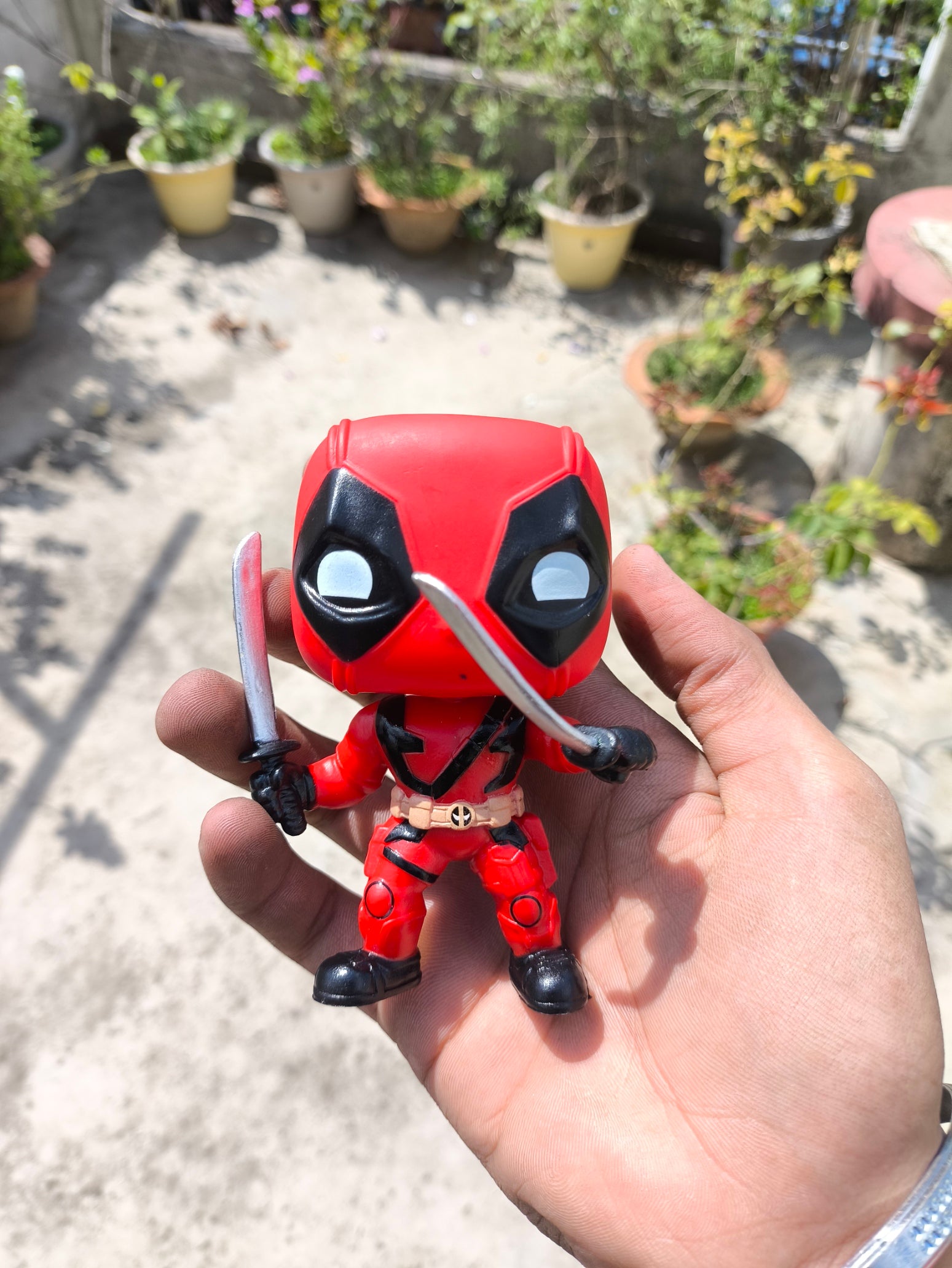 Stylized Deadpool figure with signature gear
