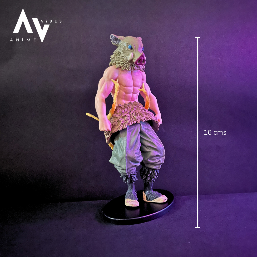 - Designed with Inosuke’s iconic boar mask and dual swords in action stance.