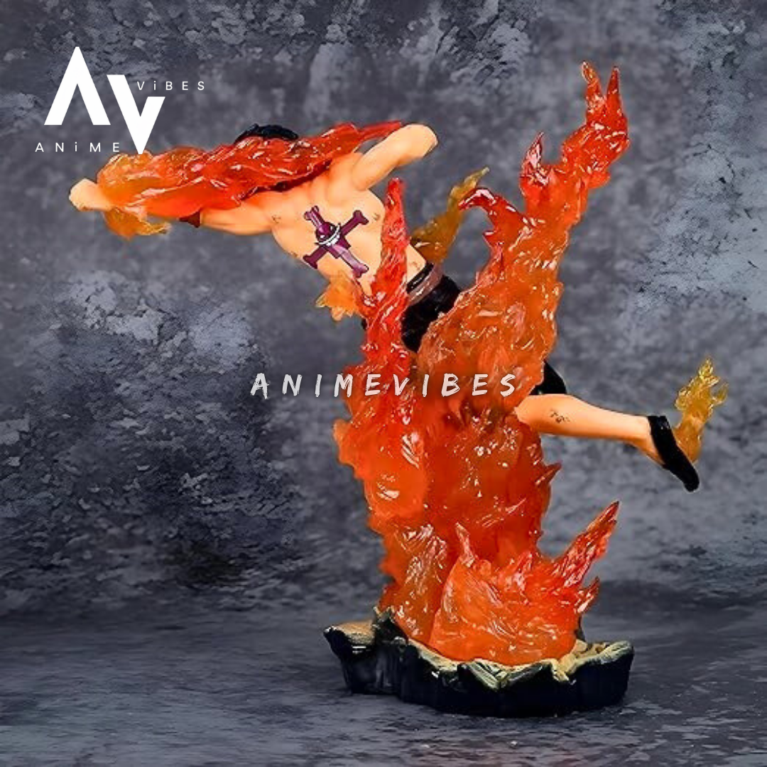 - Dynamic Fire Punch Pose: Ace is depicted unleashing his signature fire punch, radiating energy and power.